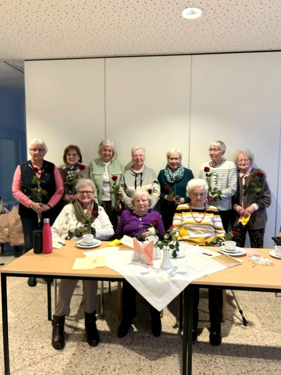Jahreshauptversammlung und Jubilarehrung 2025 Die Jubilarinnen der letzten beiden Jahre fühlten sich in der kfd-Runde sichtlich wohl.Natürlich wurde während der Versammlung auch Kaffee und Kuchen gereicht.